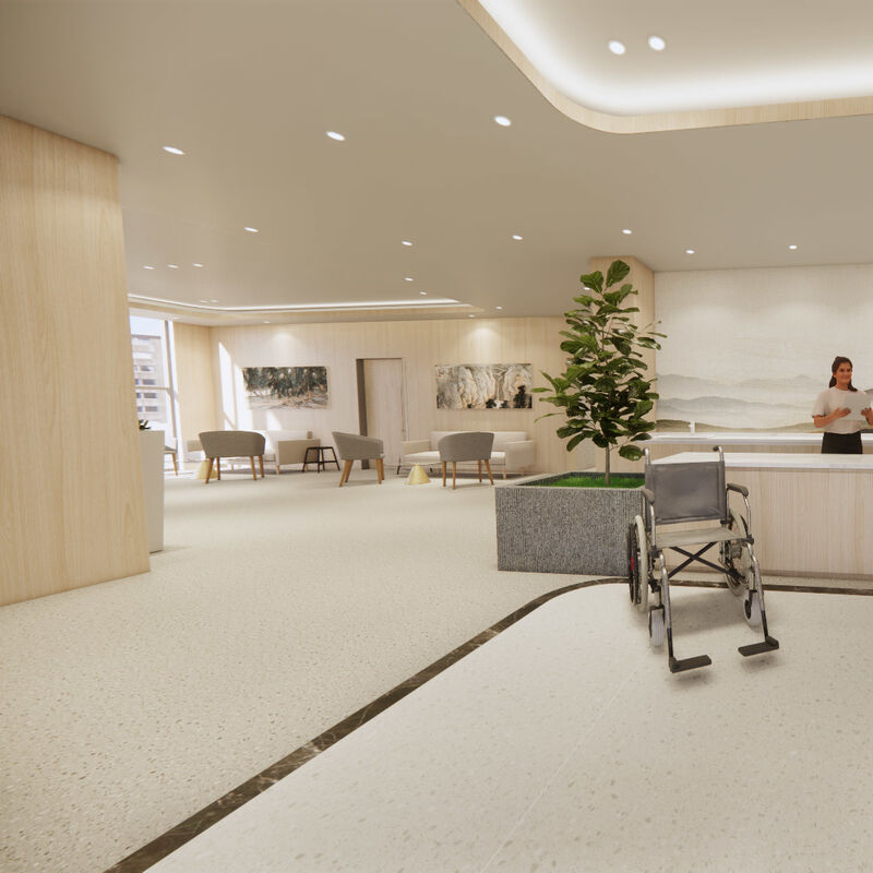 স্বাস্থ্যকর গ্রাউট-মুক্ত নার্সিং হোম ফ্লোরিং: স্টোন-লুক মাল্টি লেয়ার এলভিটি